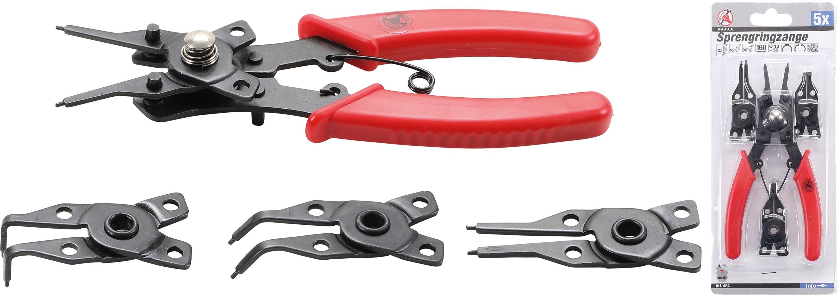 Circlip Pliers with Interchangeable Heads | 160 mm | 5 pcs. (454) - Sprostgredzenu stangas par labu cenu salidzini kurpirkt.