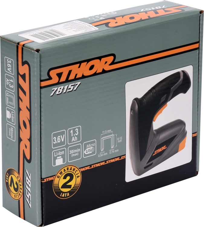 3,6V; BATTERY CAPACITY 1,3AH; MICRO USB CHARGER; STAPLES SIZE 14MM; SIMPLE SYSTEM FOR LOADING STAPLES